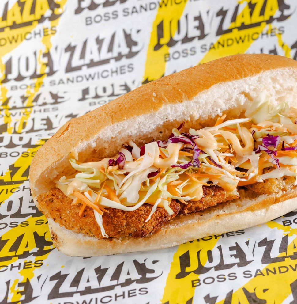 ZaZa’s Italian chicken cutlet, crunchy slaw & American cheese topped with sriracha mayo & cut chilli (optional) in a toasted…